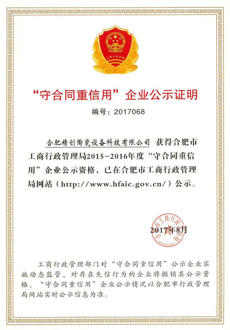 守合同重信用企業(yè)公示證明